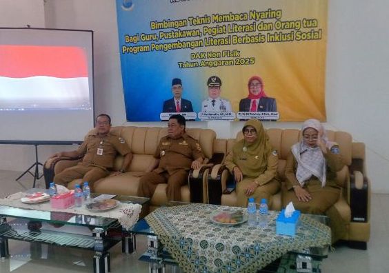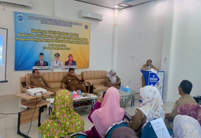 SinergiBabel.Com – Pejabat (Pj) Walikota Pangkalpinang, M. Unu Ibnudin menghadiri Bimbingan Teknis Membaca Nyaring Bagi Guru, Pustakawan, Pegiat Literasi dan Orang Tua Dalam Program Pengembangan Literasi Berbasis Inklusi Sosial yang digelar di ruang rapat Kantor Perpustakaan Kota Pangkalpinang, Senin (19/05/25).
